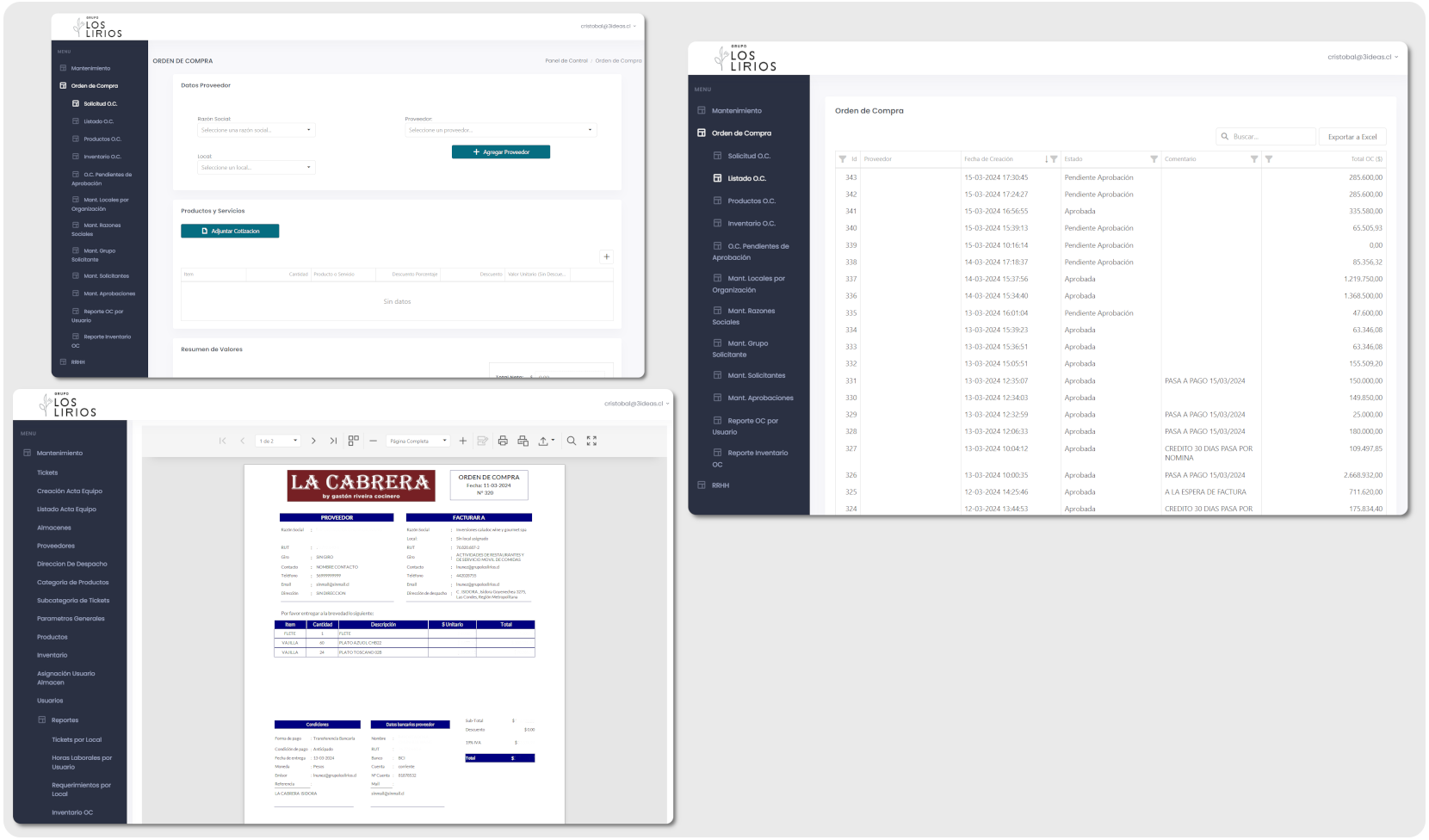 Workflow y control de emisión de ordenes de compra para proveedores del Grupo Los Lirios: Restaurantes La Cabrera, Piegari, Panera Rosa, Marietta, Hacienda Machali.